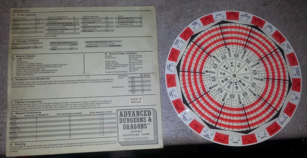 "Que es esto?Parece una diana".Es lo que alguno puede llegar a pensar,pero un vistazo mucho mas detallado os indicara que no es así.Es la AD&D Fighting Wheel,una creación de TSR UK que pese a lo curiosa que es no llego a cuajar y es otra de las rarezas por las que se pirran los coleccionistas de "hipogrifos",que es como algunos llaman en jerga a estas cosas.Os voy a contar una historia muy curiosa sobre este artefacto y sobre su creador