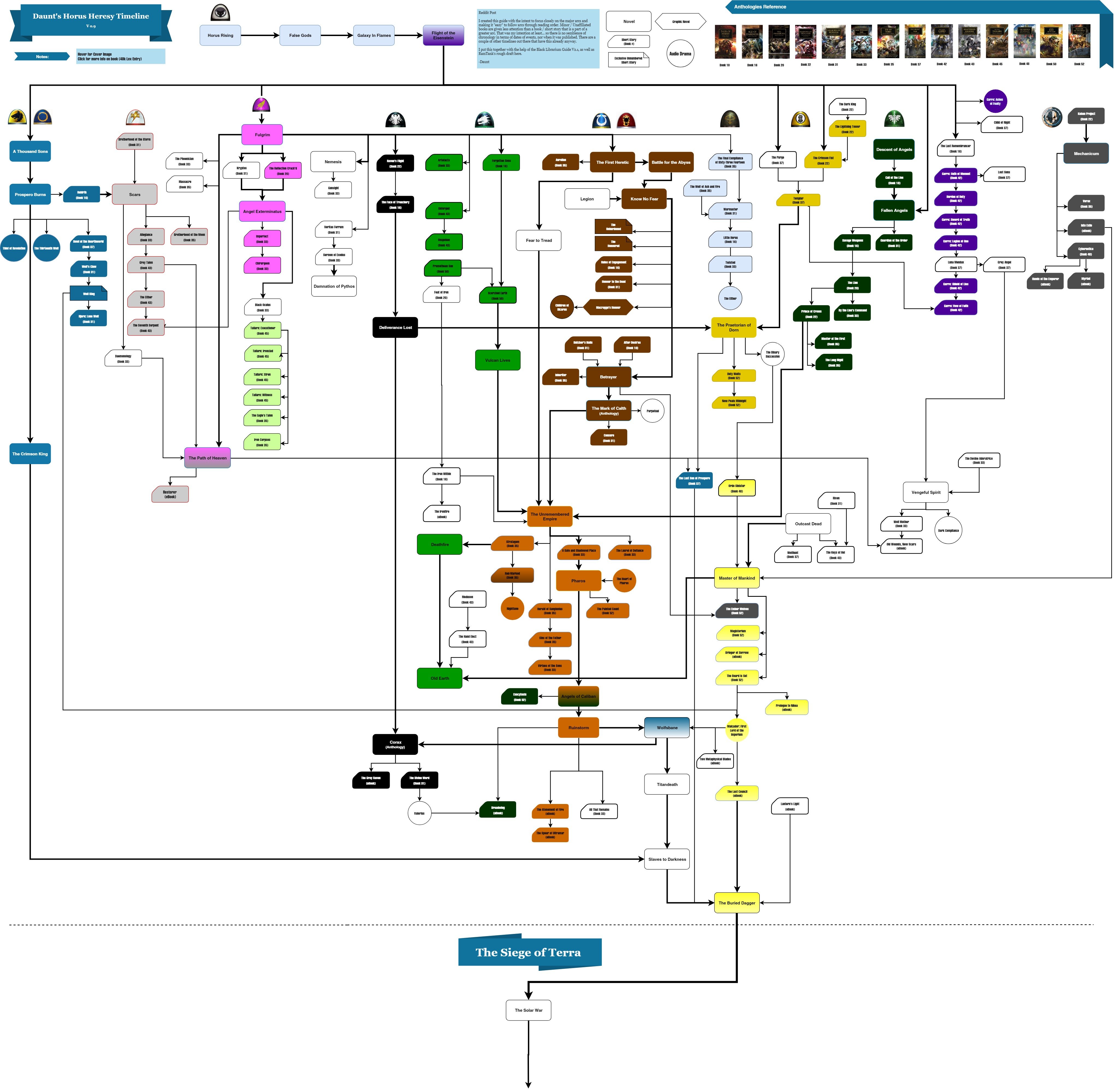 Esta pedazo de imagen (De mas de 4k x 4k pixels de tamaño) indica que Legion Astarte o Legiones Astartes(Y tambien, el Adeptus Mechanicus) salen en que obra u obras de la Herejía de Horus (Siege of Terra no sale en este cuadro."Solo" toda la Herejía de Horus...), incluida cuando la Legion ha cambiando de nombre/lealtades.Fijaros en el caso de los Lobos Lunares /Hijos de Horus.